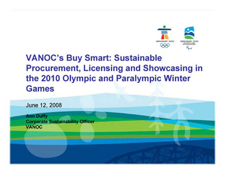 Ann Duffy, Corporate Sustainability Officer for VANOC, spoke about VANOC's “Buy Smart” ethical licensing and purchasing program. She set out the sustainability objectives outlined by VANOC and how they were being incorporated into various aspects of the Games organizing. The BuySmart program includes not only a Code of Conduct for labour rights, but efforts to identify and reward leadership in aboriginal employment, environmental performance and social benefits to the local community. She noted that this program was a first for Olympic Organizing Committees. Duffy explained that there have been improvements to the program following initial consultations with ETAG and other groups, including strengthening the hours of work provisions of the VANOC Code. She said, however, that ETAG's demand for full public disclosure of factory locations was not possible within the current program time-frame, noting that licensees were concerned about releasing what they see as competitive information.